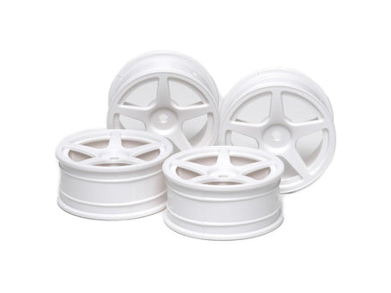 These lightweight 5-spoke wheels are molded in pristine white. Pair them with medium-narrow tire inserts and tires. Contains 4 wheels.