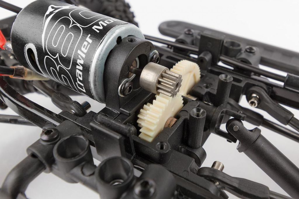 Designed not only for scale looks with realistic wheels and tires, the CR12 is built for performance as well. The steel ladder frame chassis provides the perfect backbone for this rugged little rig. The 4-link suspension, threaded shocks, and soft rubber tires give the grip and performance needed to climb over the roughest terrain. Transferring power to the rocks is a compact 3-gear transmission, front steel CVA axles, and includes metal-shield ball bearings.