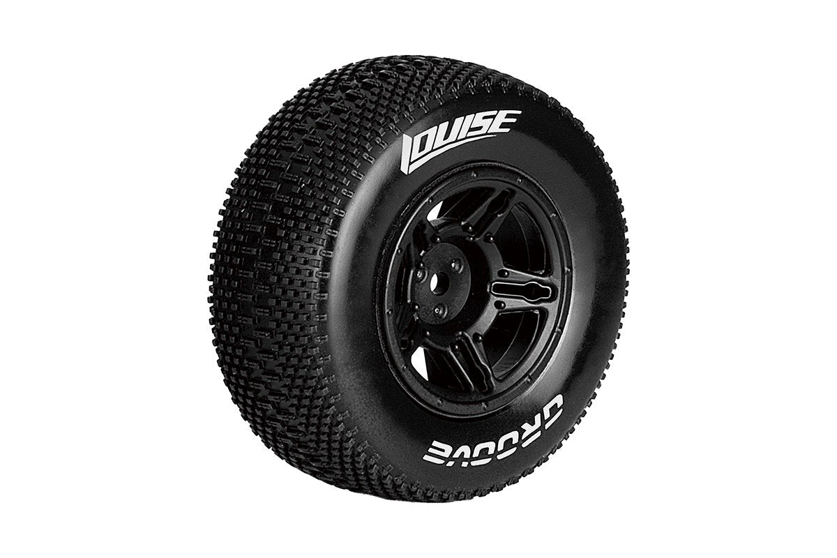 Louise R/C - SC-Groove 1/10 Short Course Tires, Soft, 12, 14 & 17mm Removable Hex on Black Rim (2)
