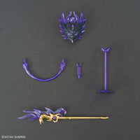From "SD Gundam World Heroes" comes a clear purple "Cleopatra Cybelei Dark Mask Version" This model kit includes a stand for the removable Dark Mask, including a weapon accessory. Once completed, the articulation allows you to pose the model in a fierce posture.
