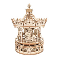 Robotime - ROKR Romantic Carousel Mechanical 3D Wooden Puzzle Music Box AMK62 is a mechanical merry-go-round diy music box 3D wooden puzzle. It represents a real merry-go-round mechanism. With romantic decoration and tune, you will get lots of fun during and after building it.