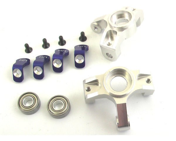 Two over sixe 5x11 bearingHD over size 5x11 bearing knuckle CNC Machined Blue Alum. King Pin Securilock clamp. Aluminum Constuction Silver in Color Length: 41mm (1.61") Height: 34mm (1.33")