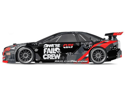 Refresh the look of your Touring Car with this easy to install replacement body! This is a standard pre-painted replacement body for #120091 - E10 Drift Fail Crew Nissan Skyline R34 GT-R, exactly as it comes in the car kit.