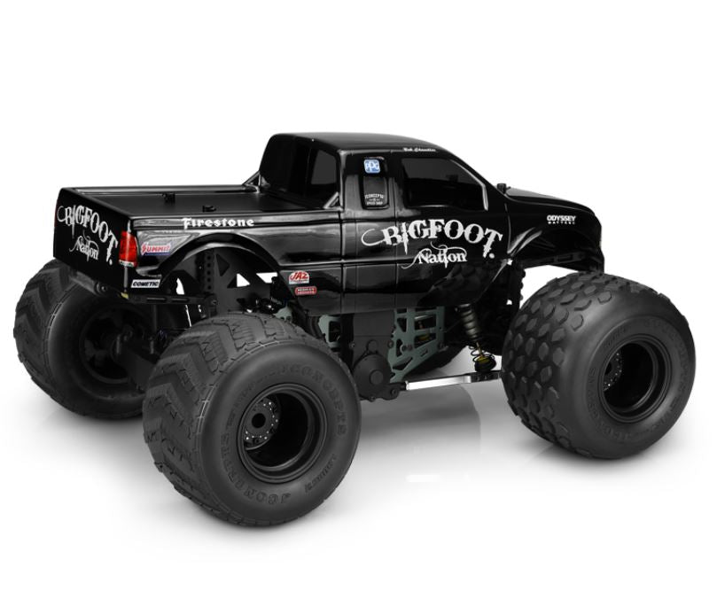 Start decal application by lining up and placing largest decals first. Spend extra time when applying over corners to seal the decals in areas which may contain multiple angles or tight spaces. Apply miscellaneous branding, sponsor logos, place headlights and grille of choice and it's time to #gojconcepts.Officially licensed by Ford to JConcepts BIGFOOT Nation theme licensed by BIGFOOT to JConcepts Body measures 7.50" in width and 12-13" semi-adjustable wheelbase Fits a variety of platforms including solid axle race trucks Scale inspired body, cab, and window design 1:1 headlight and grill treatment Clear heavy-duty polycarbonate with protective film Window masks and detailed 2005 Ford F-250 decal sheet Includes BIGFOOT Nation decal