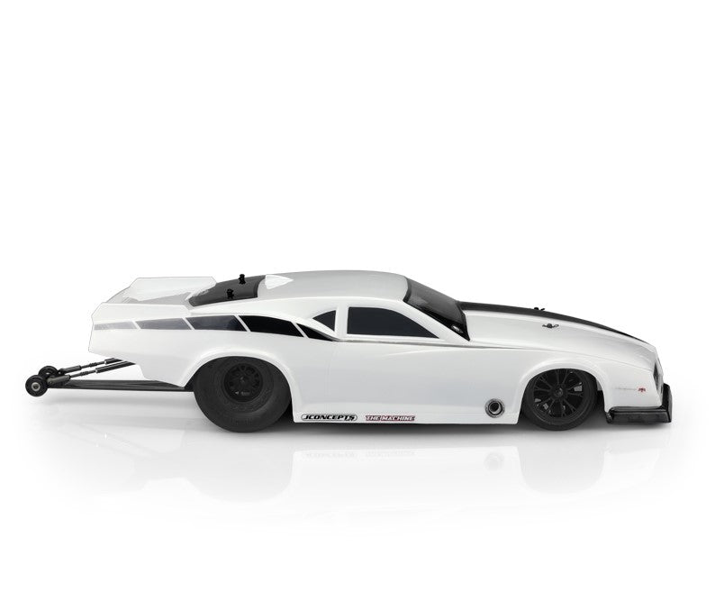 The 1968 styled body, dubbed "The Machine", has been an immediate hit on and off the race track, and prototyped and driven by JConcepts drivers across the United States. The body shell exudes confidence with its low-profile stature, super low Firebird V-nose, built-in front splitter, and crowned hood line.