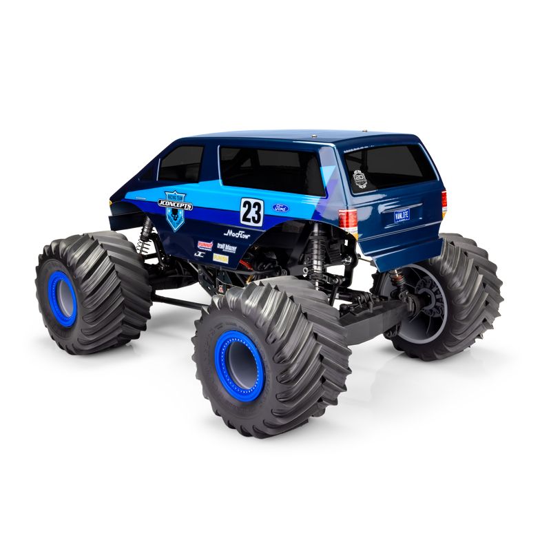 The 1985 Ford Aerostar by JConcepts is fit for the LMT, Axial SMT10, and similar sized RC monster racing trucks (requires user adapted body mounting). The clear and one-piece body has all the stand-out features that made the Aerostar memorable, starting with the low slope angle hood and windshield. The high roofline of the van body runs the length of the shell and drops back just behind the rear wheel wells to allow space for the rear hatch door and window.