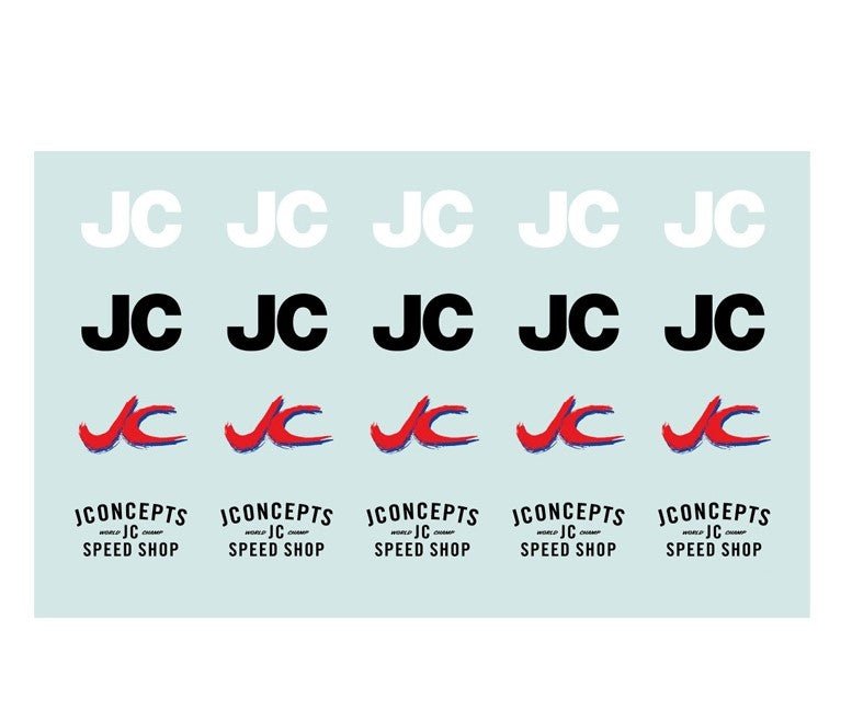 Injection molded parts feature light buckets with caps in a brilliant chrome finish. Rubber light bucket (boot) covers in a host of colors featuring white, black, yellow, pink, and blue with shock bump stops in the same magical colors. The flags are also custom, molded in bright white and printed with JC, JConcepts Speed Shop, and Regulator logos to make a winning ride look official. Five flexible flag poles are included with 3 in a blue color and 2 in black color to match different schemes.