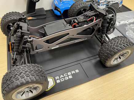 Underneath the body, the chassis is based on the Savage design using the TVP (Twin Vertical Plate) design that gives the Jumpshot drivers a tough, reliable truck, with a fun driving feel and great handling. To keep the fun going for hours and hours, the gearbox and gears are made from a heavy duty material and feature a design to help eliminate damage during hardcore bash sessions. Strong suspension and steering components add extra crash protection during all kinds of driving. The larger battery box is easily accessed from underneath the truck, so changing batteries for more fun driving is quick and easy - aided by the T-plug battery connector on the waterproof, 3S LiPo Capable speed controller. This means you can blast through any type of terrain you want, whether it's grass, mud, asphalt, gravel, or anything else.