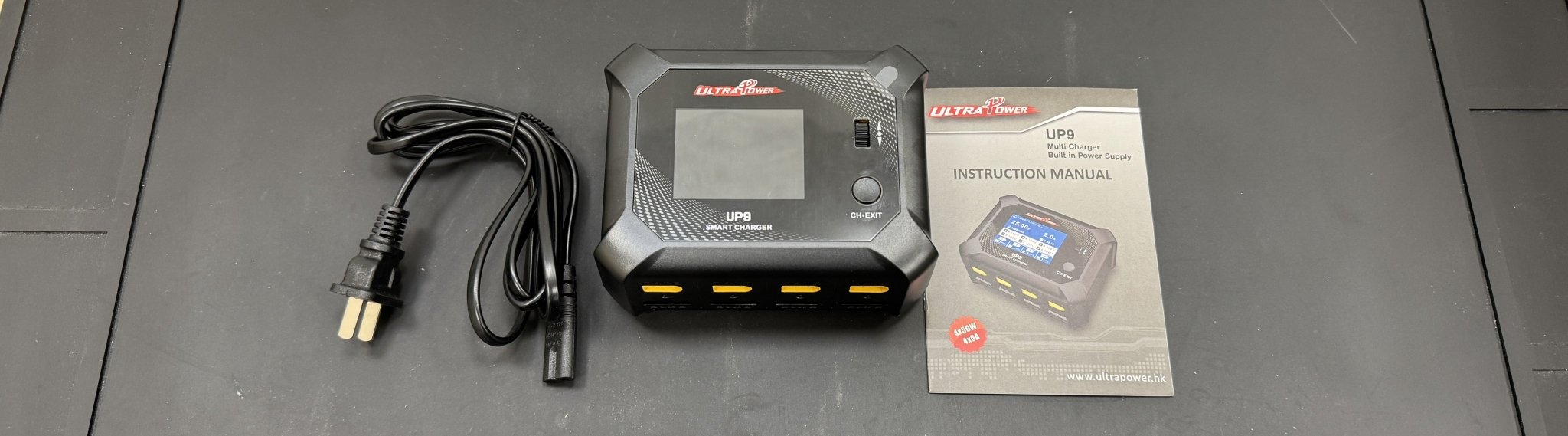 The UP9 100W/200W AC/DC Four Port Multi-Chemistry Smart Charger is a fantastic choice for hobby enthusiasts with many batteries. The UP9 can charge up to 100 watts total on AC power (CH1+CH2+CH3+CH4=100W), and up to 200 watts total when using an external DC power source (sold separately). Each charge channel supplies up to a maximum of 5 Amps to charge your batteries quickly, and the integrated balance port allows you to charge modern battery chemistries requiring cell balancing safely. The charger runs on a 32-bit ARM chip for intelligent protection and safe charging. Safety features include over-current protection, over-voltage protection, short-circuit protection, thermal protection, reverse polarity protection, and flame-retardant materials. For users with many similar batteries, the UP9 has a convenient "one key" charge function which allows you start charging on all 4 channels simultaneously with one program. The large 2.4" IPS color screen provides loads of information about your battery's condition at a glance. The menu system is easily navigated with the scroll/toggle wheel, and ch/exit button. This is a great charger for beginners and advanced hobbyists alike, get yours today!