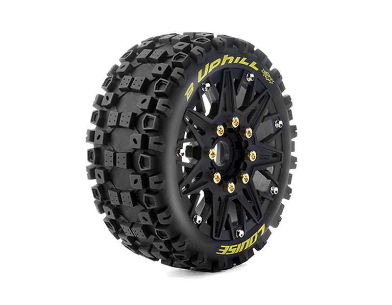 Louise R/C - MFT B - Uphill Soft 1/8 Buggy Tires, 17mm Hex, 0" & 1/2" Offset, Mounted on Black Rims, (2) - Hobby Recreation Products