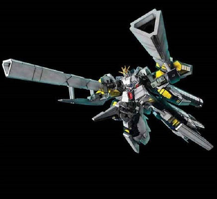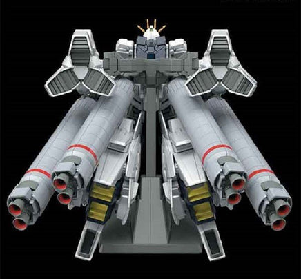 A test type unit created exploring technologies that would eventually lead to the Nu Gundam, the Narrative Gundam from Gundam NT is featured here with its A-Packs equipment used in