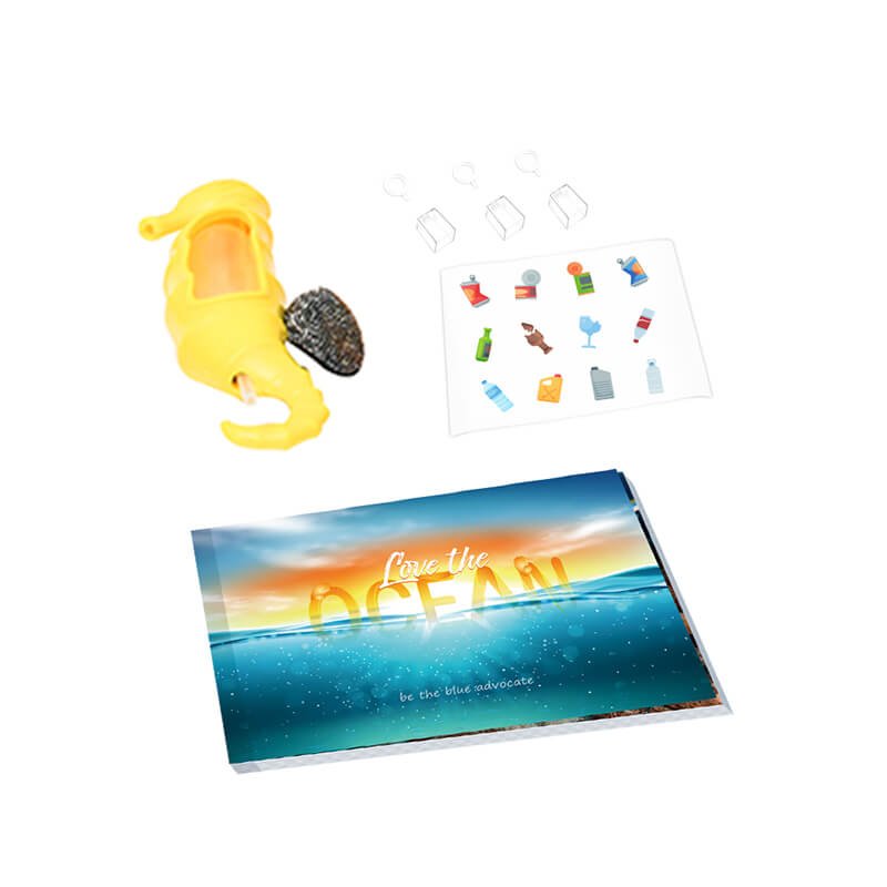 Use a water bottle and put sea wastes at the bottom. Squeeze the bottle and watch your seahorse collect the wastes. Learn buoyancy while cleaning the sea.