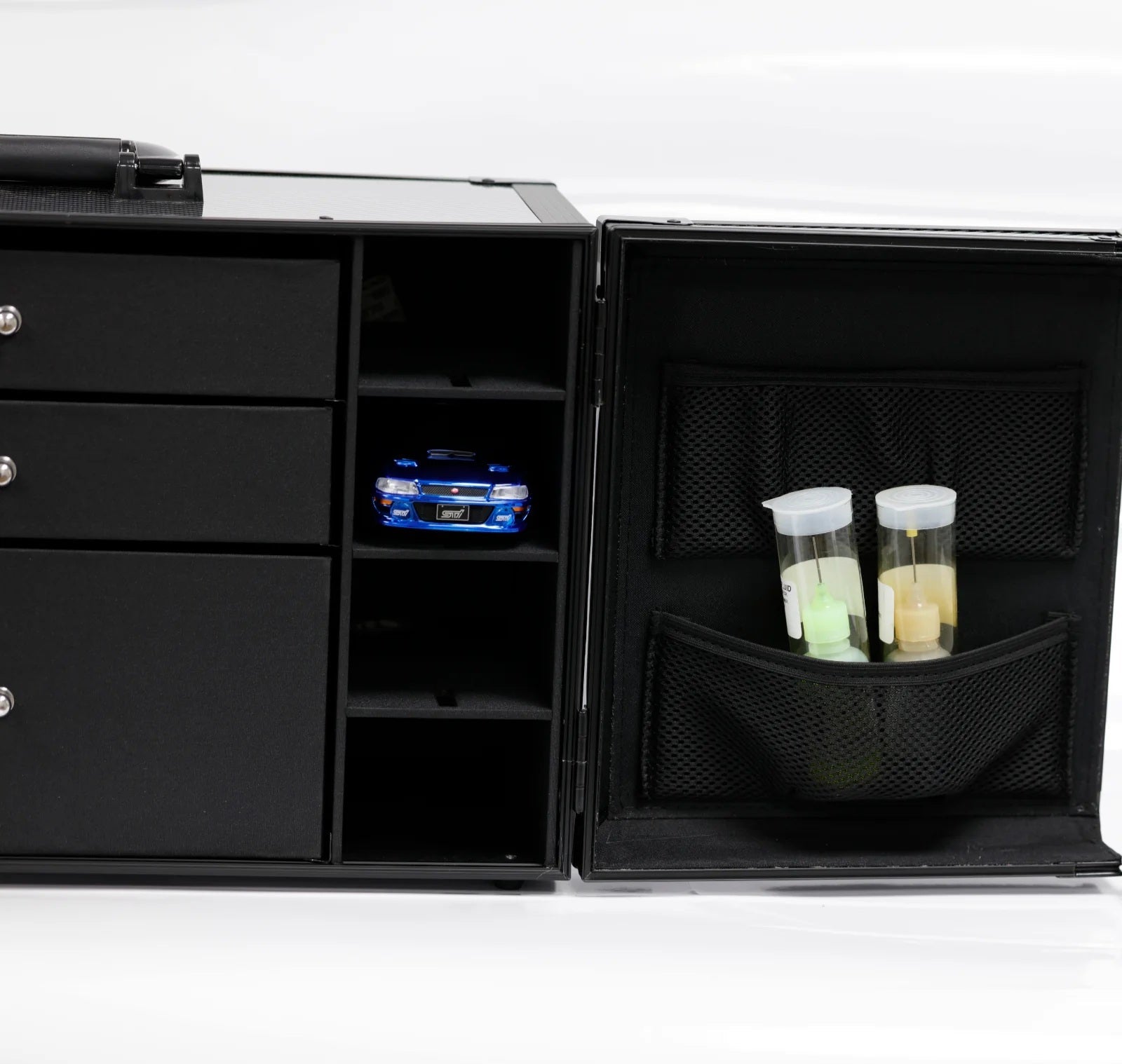 • Bottom drawer can fit almost all brands controller like Kyosho, Traxxas, Flysky Noble etc...