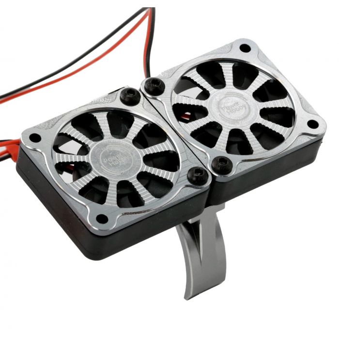 Power Hobby - 1/5 Aluminum Heatsink with 40mm Dual High Speed Cooling Fans and Cover, Gunmetal