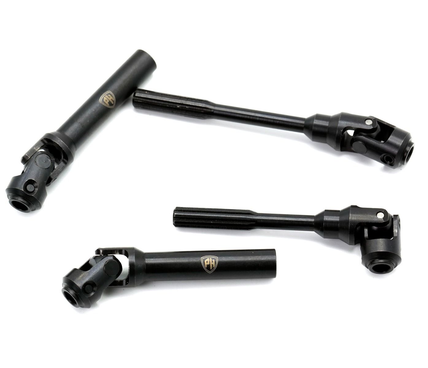 2 DriveshaftsUniversal Joint Style Hardened Steel Construction Splined Engagement Compatible with Standard 3 gear transmission Splines are timed to allow for driveshafts to be installed in phase