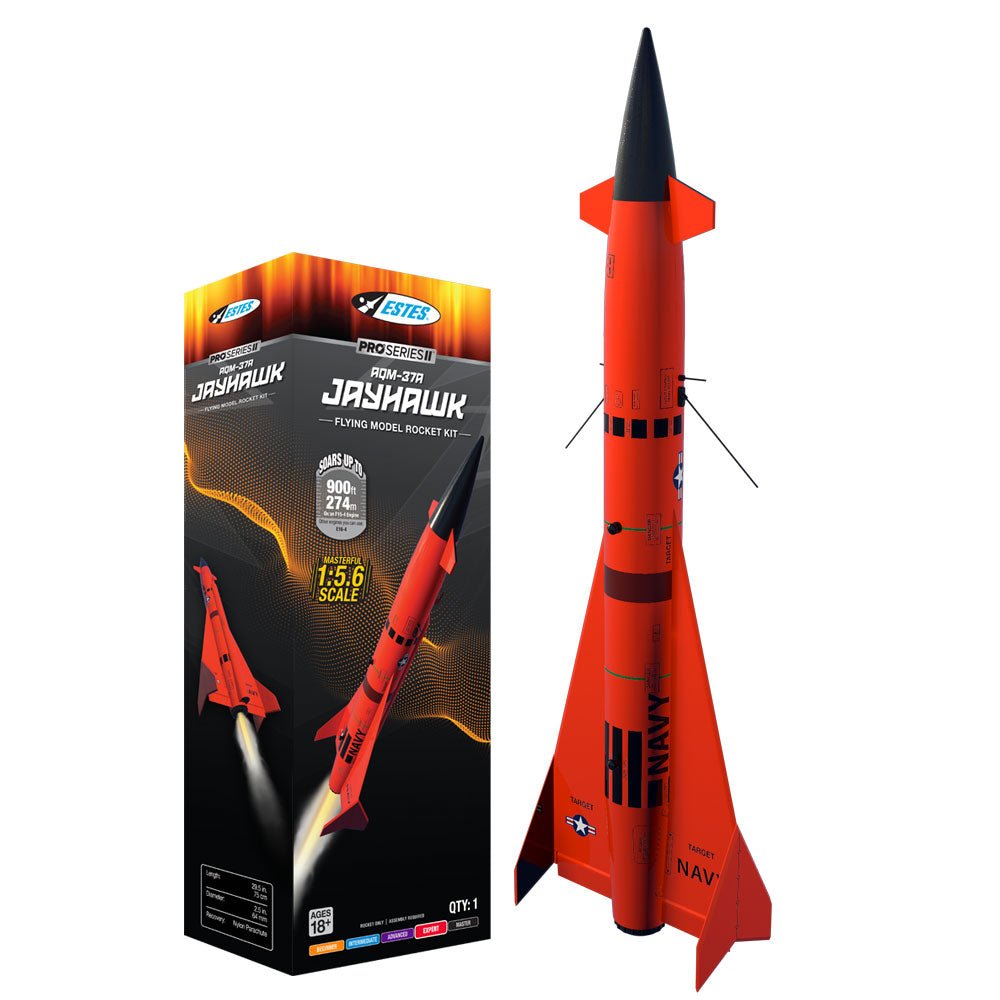The Estes Pro Series II Jayhawk is a meticulously crafted 1:5.6 scale model of the iconic Beechcraft AQM-37A - a supersonic Navy target drone that once challenged the skill of jet pilots in live-fire exercises. Known for reaching speeds of Mach 4 and soaring to altitudes beyond 100,000 feet, the original Jayhawk played a critical role in military training. Now, model rocketry experts can recreate that high-stakes energy in the field, complete with striking details and authentic markings.