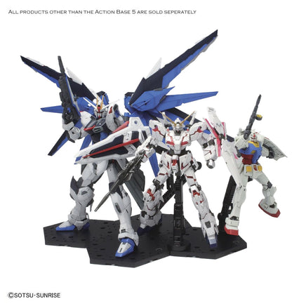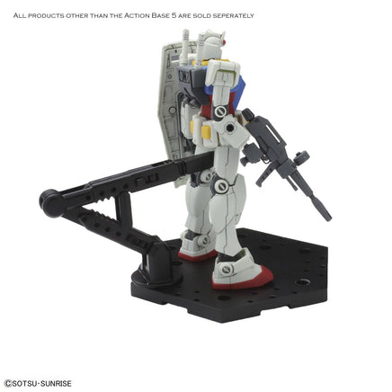 Bandai's Action Base 5 stand is an upgrade in every way. The new design allows for more dynamic poses and display options. It also includes as accessory support arm to help keep gun laden limbs from drooping over time. Multiple stands can be linked together to form larger scenes and diorama's, adding to the visual effects and stunning presence of your collection.