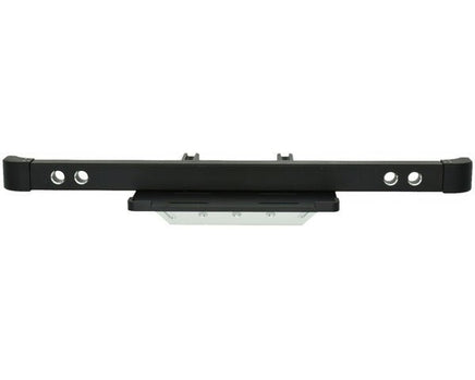 Hot Racing's aluminum front bumper with skid plate and winch mounting plate for the Traxxas TRX-4 crawler.Beefy machined billet aluminum bumper, anodized semi-flat black Removable aluminum skid plate, anodized silver Removable aluminum winch mount plate, anodized black 4 x 5mm LED holes