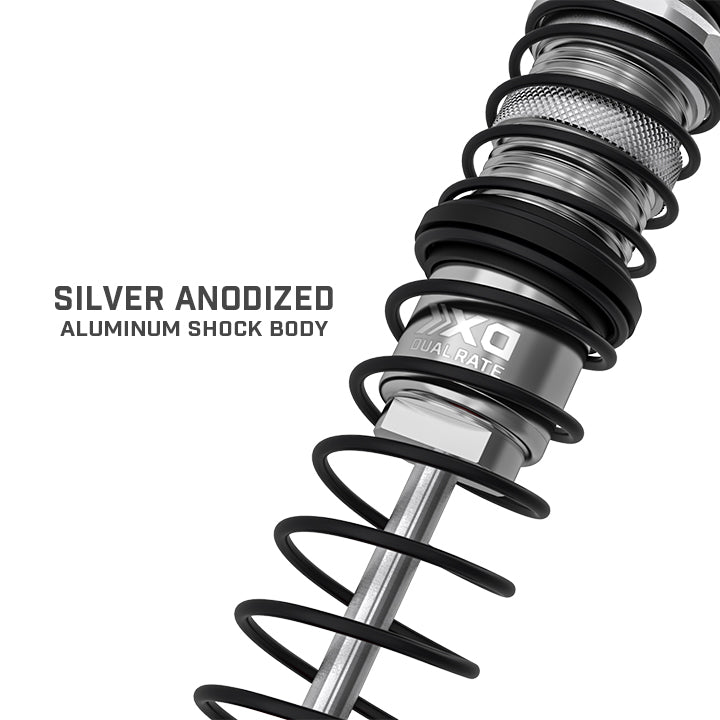 Assembly instructionsCNC machined aluminum shock bodies, spring adjust nuts, stop rings and cartridges. Silver anodized shock bodies, spring adjust nuts, stop rings and cartridges Upper and lower shock ends includes silver anodized aluminum balls Fully threaded for rapid adjustment Delrin pistons, shaft exits through double O-ring seals and true dual stage spring rate. Easy load shock seal assembly Shock Body Diameter: 14mm Spring Diameter: 19mm Spring Length: 20mm and 50mm Full Shaft Travel Range: 31mm (without Rubber bump stop) Shaft Diameter: 3.5mm