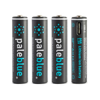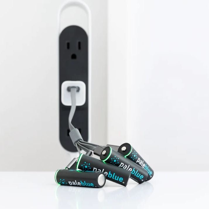 Includes 4 Paleblue AAA Batteries and 1 Charging Cable.