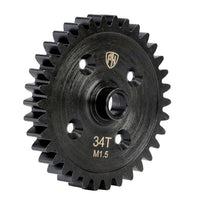 Notes: Will not work with Stock Mod 1 Pinon gear. 1.5 Mod Pinion Gear Range 10 to 13 TeethCNC machined Hardened steel construction Black oxide coating Number of teeth: 34 Gear pitch: 1.5 module Width: 7mm